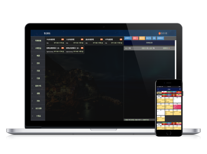 PC端:咨客開(kāi)臺、電腦點(diǎn)單、收銀系統、存取酒系統、會(huì )員管理、后臺數據報表查詢(xún)